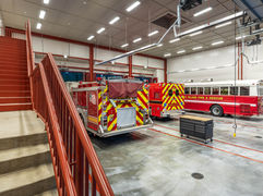 The new facility is a one-story station of approximately 8,300 SF, which houses living quarters for 5 firefighters, community meeting room, training room, weight room, and 3-truck apparatus bays. As part of the Town’s initiative to upgrade facilities, a design standard for fire stations was developed and was incorporated in the design of this station. This includes the ability for the building to withstand seismic and high wind events, along with being elevated above flood levels and ability to house additional staff during a emergency events. The building exterior is designed to compliment the surrounding architecture of Sea Pines Resort which includes brick, cementitious panel, shingle siding and asphalt shingle roof with feature areas with standing seam metal roofing.